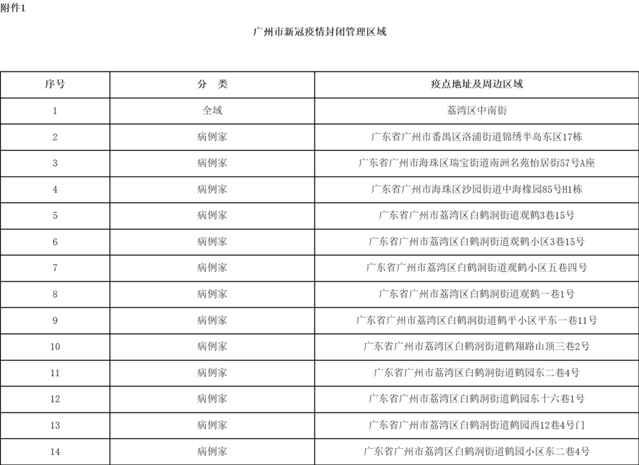 1.廣州市新冠疫情封閉管理區(qū)域