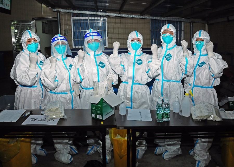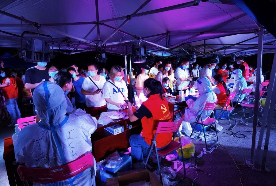 為了按時按量完成檢測工作,多個檢測點實行24小時輪班制度。醫(yī)護人員、志愿者們通宵達旦,堅守一線。