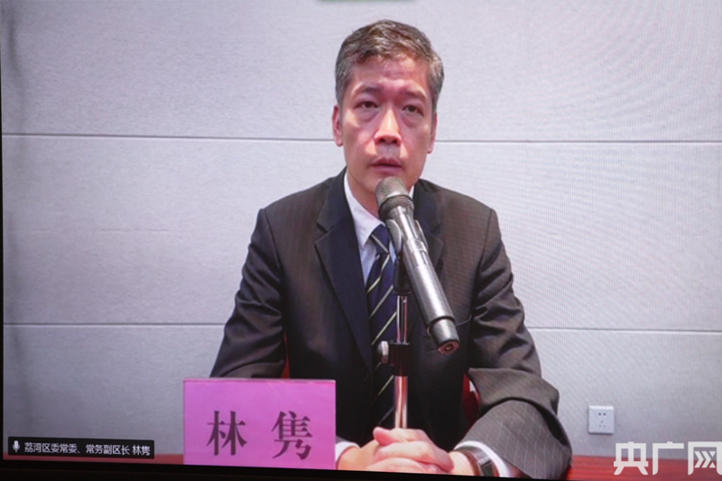 廣州荔灣區(qū)常務(wù)副區(qū)長林雋通過視頻連線介紹最新情況(央廣網(wǎng) 官文清 攝)