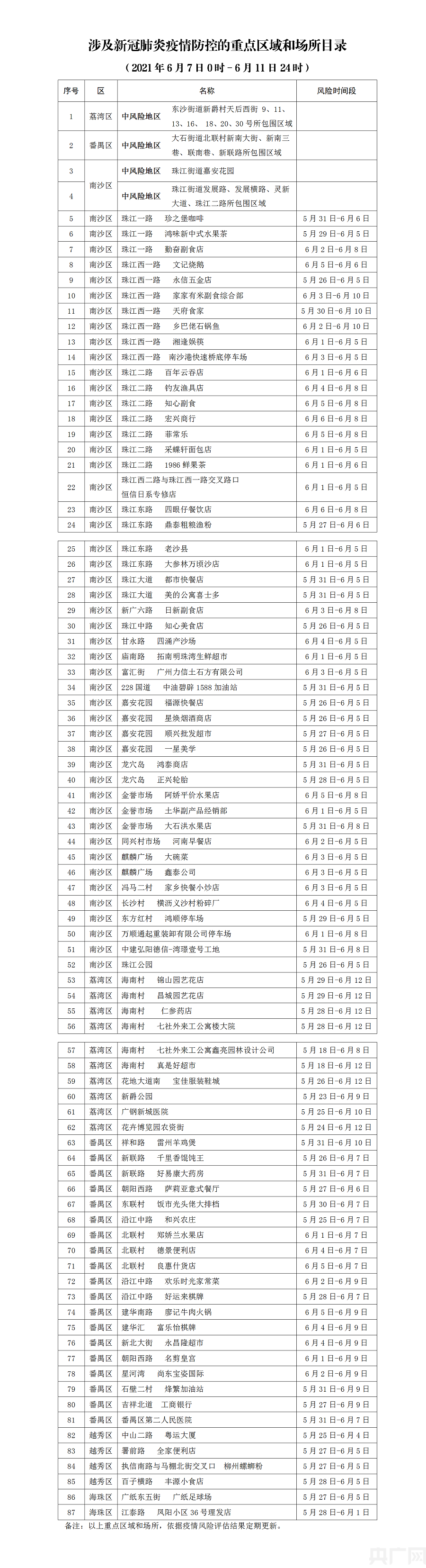 附件:涉及新冠肺炎疫情防控的重點區(qū)域和場所目錄(2021年6月7日0時-6月11日24時)