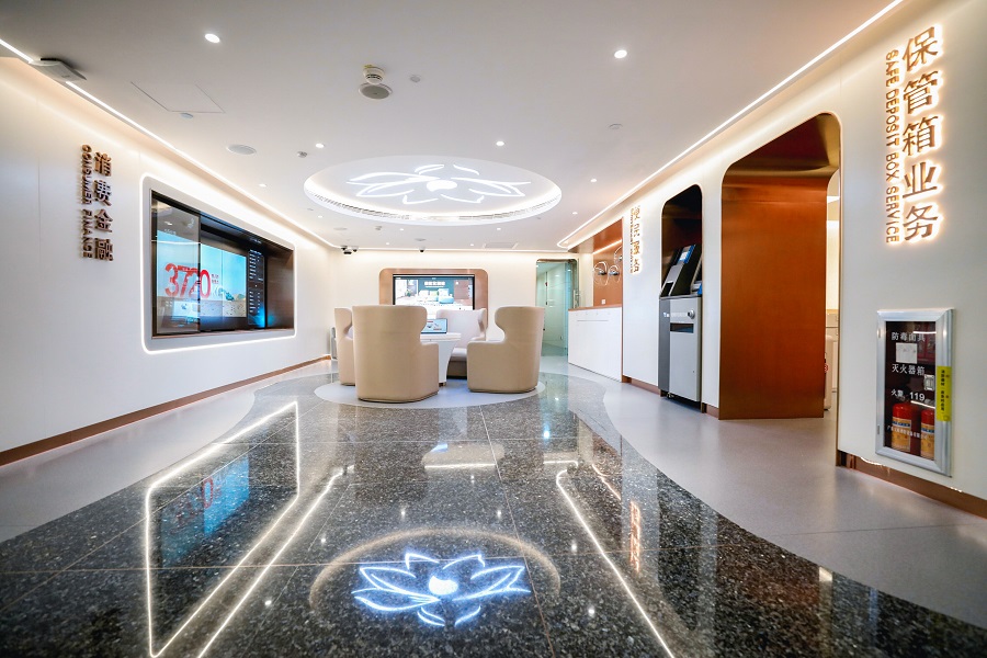 目前,館內的大部分區(qū)域都配備了一體化智能茶幾和移動式智能柜臺,客戶既可自助辦理業(yè)務,也可通過“一鍵呼叫”功能及時獲取“肩并肩式”的專業(yè)服務。
