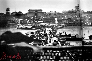 東新橋一直是惠州的地標。古惠州府縣兩城(即橋東橋西)隔西枝江相望,兩城之間靠一座浮橋連接起,這便是古東新橋。上面這張東新浮橋的照片是在美國南加州大學數(shù)字圖書館檔案中發(fā)現(xiàn)的,拍于100多年前,這恐怕是東新橋最早的照片了,可以看到惠州古城大東門門樓及東新浮橋,大東門右側是文筆塔,塔后是府學宮,塔前則是上下米街及碼頭,這正是惠州古城最熱鬧的東江及西枝江流域的重要商品集散地。蘇東坡剛到惠州時從這上岸,并在合江樓住了一年又1個多月,寫下“歌呼雜閭巷,鼓角鳴枕席”的詩句。