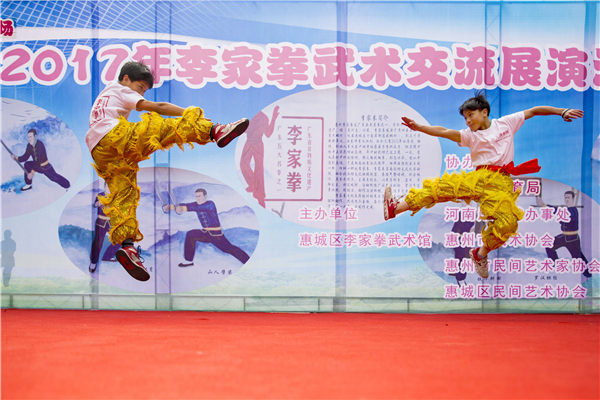 惠州李家拳,嶺南五大名拳之一,清朝時由火地村(惠城區(qū)河南岸米地村)村民李義創(chuàng)立,距今已有260多年的歷史。2013年12月,入選廣東省第五批傳統(tǒng)體育、游藝與雜技類非物質(zhì)文化遺產(chǎn)名錄。
