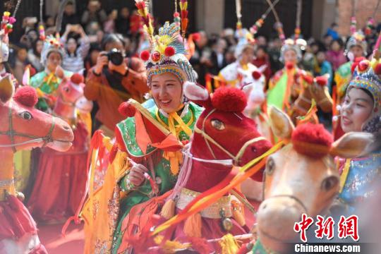 據(jù)中國(guó)新聞網(wǎng)報(bào)道,一群年約二十的姑娘手執(zhí)彩旗,頭戴桂冠,身著錦袍,腳踏布馬,靜立在潮州市牌坊街的石板路上。倏而音樂聲起,姑娘們聞聲而動(dòng),或搖旗、或揚(yáng)鞭,在旋轉(zhuǎn)、跳躍之間,一支充滿民俗氣息的獨(dú)特舞蹈就此上演。