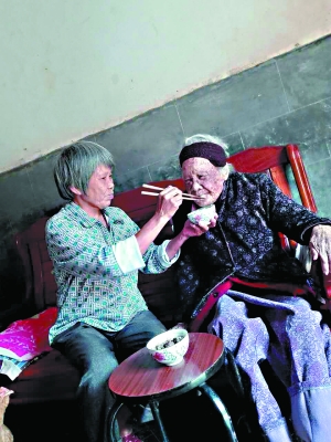 紫金縣百歲孤寡老人李英生前得到劉運(yùn)如無(wú)微不至的照料。