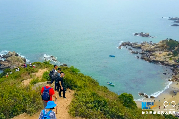每逢周末及節(jié)假日,驢友們就會(huì)組團(tuán)相約于這條實(shí)際行走路程約八公里的穿越線路上,此時(shí)此刻,東西涌海岸線則變成了驢友徒步的最佳圣地。新華網(wǎng)發(fā)(陳楷攝)