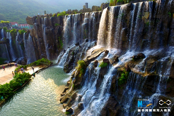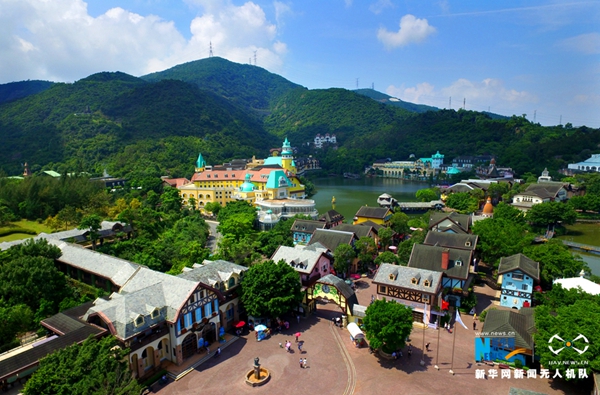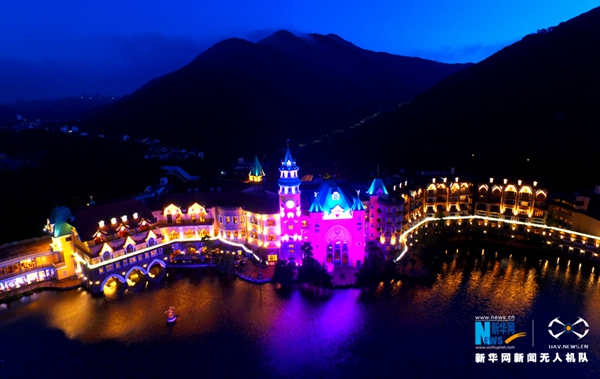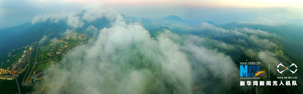 鳥瞰山頂上的東部華僑城云海谷,如“云端之城”。新華網(wǎng)發(fā)(藍(lán)遠(yuǎn)峰攝)