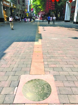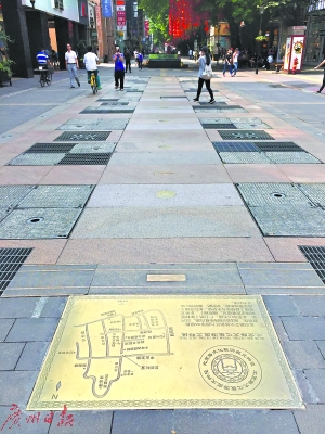 細心的市民會發(fā)現(xiàn),北京路步行街長約500米的軸線內(nèi),地上相隔一定距離就鑲嵌了不同大小的銅制浮雕。