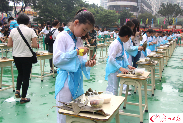 據(jù)廣州日報報道,合興苑小學(xué)千人包粽迎端午 2017年5月23日上午,合興苑小學(xué)舉辦了一場別開生面的千人包棕迎端午活動,邀請家長與學(xué)生在動手實(shí)踐中感受民俗文化,在親子互動中體驗(yàn)過節(jié)的樂趣,場面極為壯觀。