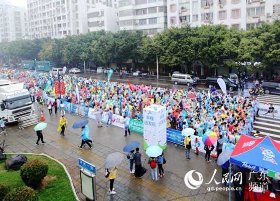 近1.5萬(wàn)名海內(nèi)外選手迎著風(fēng)雨歡跑。