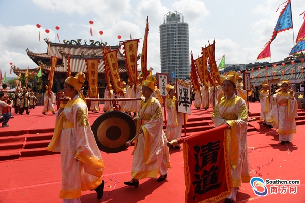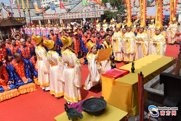 媽祖文化旅游節(jié)開(kāi)幕式在巽寮天后宮舉行,天后宮正殿內(nèi)供奉的媽祖神像有5米多高,是省內(nèi)最高的媽祖坐像,端莊祥瑞、栩栩傳神。擂鼓鳴炮、迎神上香奠帛、誦讀祝文、跪拜叩首……現(xiàn)場(chǎng)舉行了莊重的媽祖祭典儀式,頌揚(yáng)媽祖立德、行善、大愛(ài)精神,進(jìn)一步傳承、保護(hù)、發(fā)展媽祖文化。