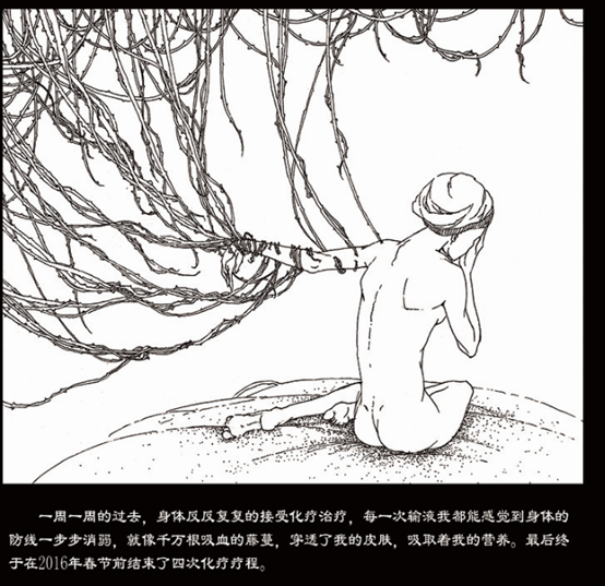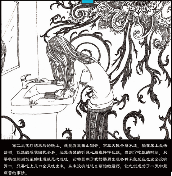 她畫的內(nèi)容是自己的治療過(guò)程。每次治療結(jié)束,身體狀況不錯(cuò)的時(shí)候,她就會(huì)畫上一幅,從2015年10月一直畫到了2016年6月。而正是這些畫,讓她有了活下去的動(dòng)力!拔耶(dāng)時(shí)就想把我的故事記錄下來(lái),希望我的抗癌日記完成之際,我的病也會(huì)好起來(lái)!