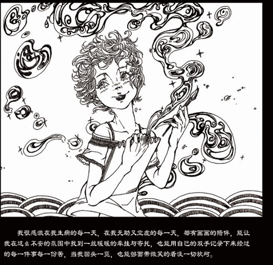 經(jīng)過(guò)大約半年的治療,她的病情終于得到了控制。如今,她正在家靜養(yǎng),每天的事情就是繪畫。她經(jīng)常把作品放在朋友圈里和大家分享,偶爾也接一些游戲公司的單來(lái)創(chuàng)作。