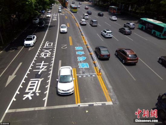 據(jù)中新網(wǎng)報(bào)道:4月17日,廣東深圳,全國(guó)首條應(yīng)用遙控移動(dòng)護(hù)欄燈控的潮汐車道亮相深圳市南山區(qū)深南南新路口。