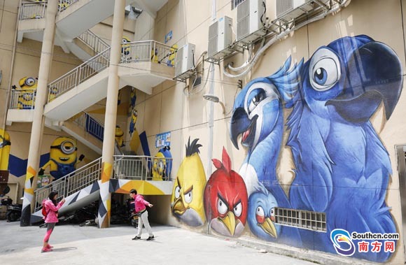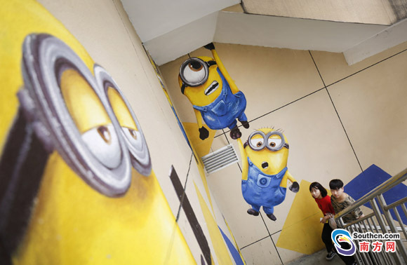 據(jù)南方網(wǎng)報道,近10米高憨態(tài)可掬的大臉貓、視覺逼真的3D隧道、一群動作各異的小黃人沿著樓梯出現(xiàn)在各個角落……一幕幕奇異的景象出現(xiàn)在了中山市石岐區(qū)華佗新村富榮花園樓下的墻體上。這些形態(tài)逼真,色彩艷麗的墻繪作品,讓這個老小區(qū)增添了時尚文化氣息,吸引了不少路過的年輕人駐足拍照留念。據(jù)悉,華佗新村富榮花園樓下的商鋪已經(jīng)空置多年,一家企業(yè)以文化創(chuàng)意為主題進(jìn)行項(xiàng)目改造,為了吸引更多市民的注意,專門邀請了專業(yè)團(tuán)隊花了近半個月時間打造了這一些墻繪作品。