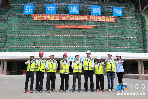 中建鋼構(gòu)有限公司肇慶體育中心升級改造工程項(xiàng)目項(xiàng)目經(jīng)理薛飛飛(左5)是中建鋼構(gòu)最早一批80后項(xiàng)目經(jīng)理。他介紹。項(xiàng)目升級改造工程自2016年3月開工,預(yù)計(jì)將于2018年初提前完工。體育中心升級改造后,將成為集綠色節(jié)能、智能辦公、健身、娛樂、休閑和展示于一體的大型多功能綜合性活動場所。新華網(wǎng) 伍嘉煒攝