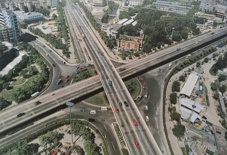 上圖:中山一立交橋老照片,該立交橋位于廣州大道東風(fēng)路和天河路交匯處四層立交橋相連而成;下圖:2017年中山一立交橋航拍圖(拼版照片,3月1日攝)。新華網(wǎng)發(fā)陳鴻攝