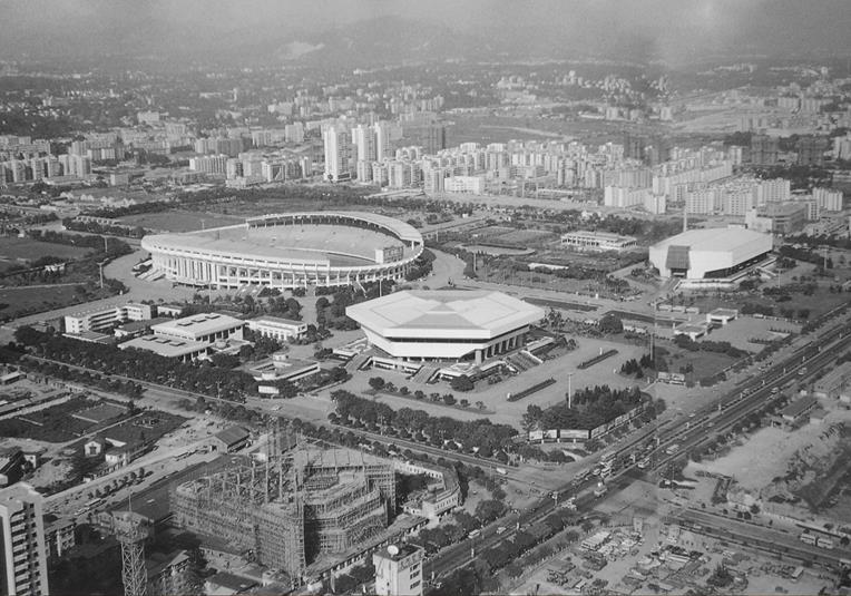 上圖:天河體育中心老照片,位于天河路的天河體育中心,由體育場、體育館和游泳館三大主體建筑及其它配套工程組成;下圖:2017年海天河體育中心航拍圖(拼版照片,3月1日攝)。新華網(wǎng)發(fā) 陳鴻攝
