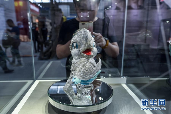 5月15日,觀眾在文博會(huì)現(xiàn)場(chǎng)拍攝鉆石擺件“鵬鵬”。當(dāng)日,第十三屆中國(guó)(深圳)國(guó)際文化產(chǎn)業(yè)博覽交易會(huì)落下帷幕。據(jù)大會(huì)統(tǒng)計(jì),本屆文博會(huì)成交2240.848億元,同比增長(zhǎng)10.28%。其中,合同成交2064.348億元,零售及拍賣成交176.500億元。新華社記者 毛思倩 攝