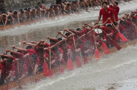 “江水漲,江面闊,大人細(xì)路睇龍船!碧旌痈鞔宓凝堉劬跋騺砘鸨鞔遄裾掌瘕、訓(xùn)練、采青、趁景的步驟熱烈地進(jìn)行著。其中擁有49條龍舟的車陂村,是天河龍舟最多的村。石牌景、獵德景、楊箕景等龍舟景位于廣州CB D,趁景活動全部安排在端午節(jié)正日,將廣州端午節(jié)推向高潮。
