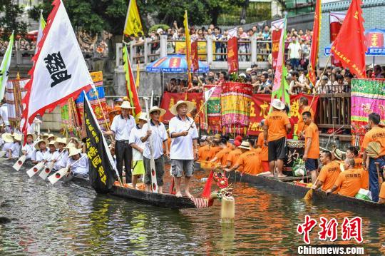 今日(五月初六),“契仔”也會扒龍船來到佛山鹽步村,回訪“契爺”參加當(dāng)?shù)佚埓啊?/p>