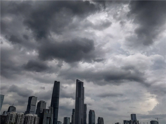 21日下午三點(diǎn),廣州烏云雷雨滾滾而來(lái),廣州市區(qū)瞬間被雨霧籠罩。