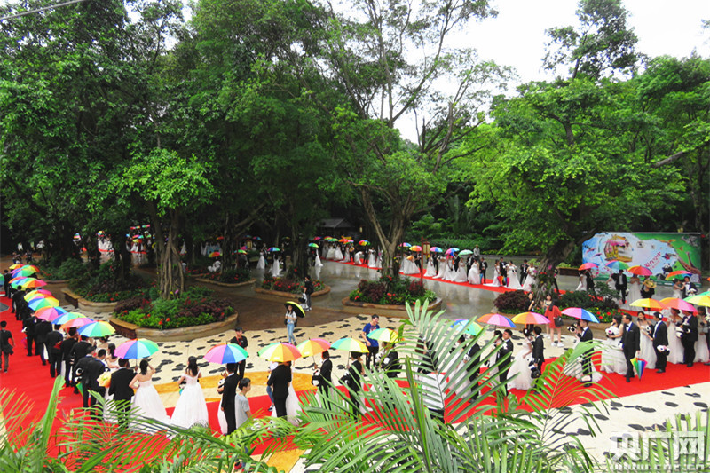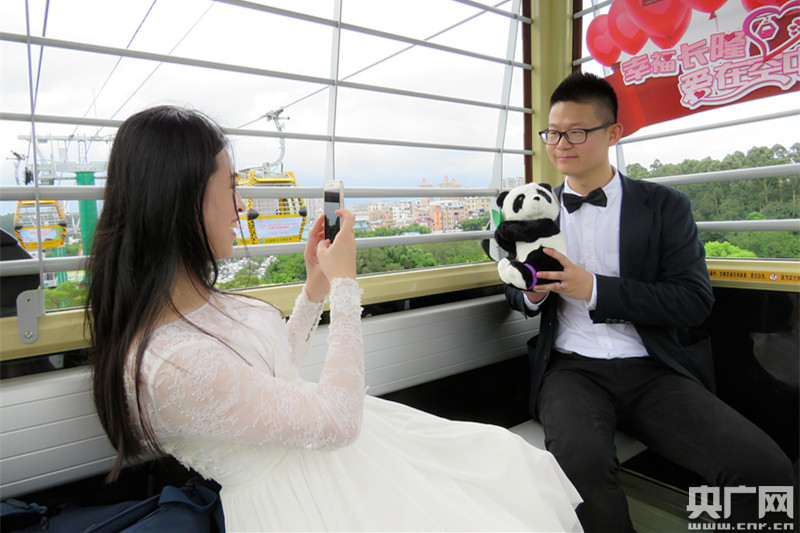 央廣網(wǎng)廣州7月8日消息(記者 王雪薇)草坪婚禮、海邊婚禮見(jiàn)得多了,而有機(jī)會(huì)在空中許下愛(ài)的誓言則并不多見(jiàn)。7月8日中午,全球最大的空中集體婚禮在廣州長(zhǎng)隆野生動(dòng)物世界舉行,來(lái)自全國(guó)的227對(duì)新人乘坐227個(gè)空中纜車,留下了足以銘記一生的時(shí)刻。