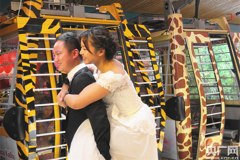 坐著纜車,看著下面的河馬、長(zhǎng)頸鹿等野生動(dòng)物,新人們顯得格外興奮,互相拿手機(jī)拍照。最浪漫的事,或許就是生命中最重要的時(shí)刻,有你在身旁吧!