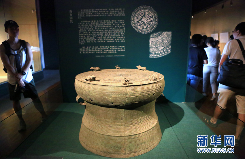 8月31日,為期三個月的《南北通融——南粵古驛道展覽》在廣東省博物館開展。展覽陳列了與道路、人員和商貿(mào)有關(guān)的300多件/套歷史見證物,展示了南粵地域文化的包容性和多樣性,吸引觀眾通過旅游、徒步、攝影等文化休閑活動實地感受古驛道的魅力。圖為觀眾參觀“南北通融——南粵古驛道展覽”展出的漢銅鼓。新華網(wǎng) 崔凌云攝