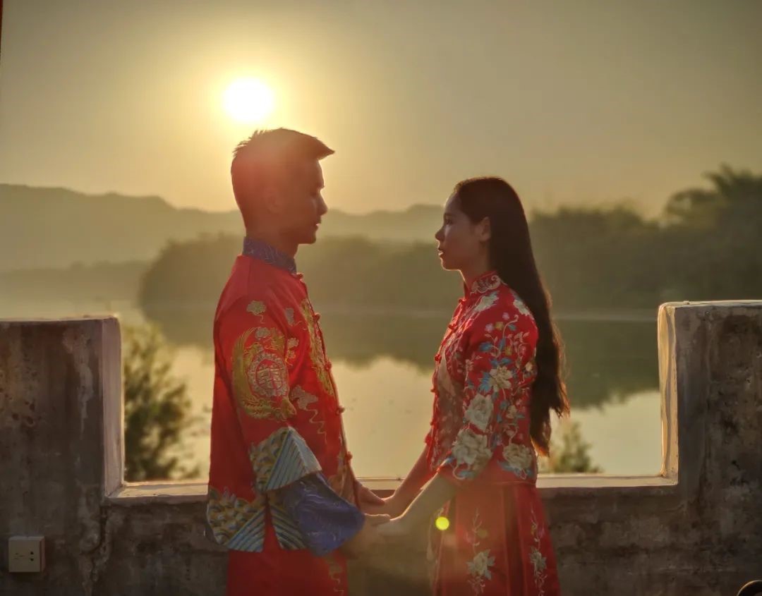 凌晨四點(diǎn)半,幾乎一晚上沒合眼的易德育起了床,套上大紅喜袍,在魚咀村的咖啡館門口搓著手走來走去,他的新娘子陳春玲還在房間里化妝。七十多歲的邱阿婆和林阿伯從家里端來燒雞白酒、桔子蘋果、生菜小蔥,沏了一壺?zé)狎v騰的英紅九號(hào),等著一會(huì)兒去玉虛宮給新人們祈福。今天是易德育和他五個(gè)扶貧工作隊(duì)同事集體婚禮的大日子。
