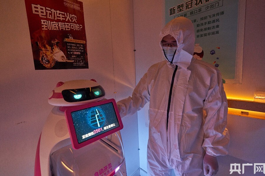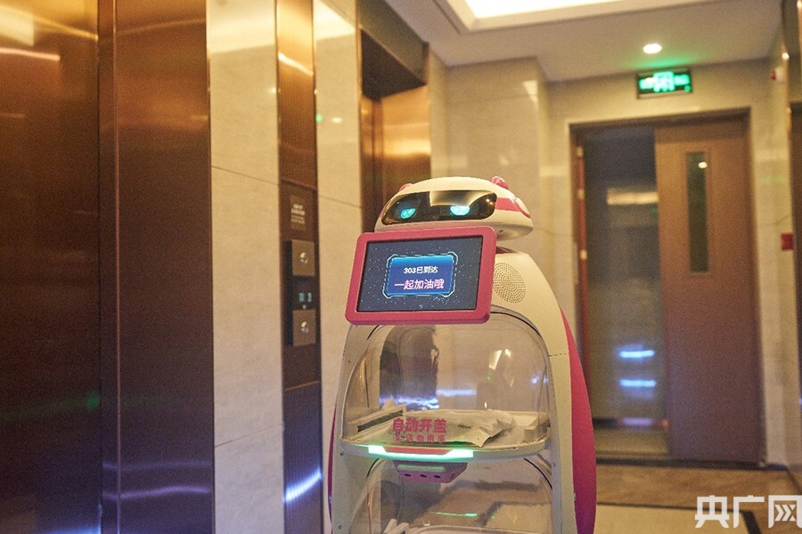 該小區(qū)物業(yè)管理人員透露,紫郡府小區(qū)有9棟樓13個單元約1000戶,因?yàn)橐咔,物業(yè)管理人員直接減半上崗,目前僅有40人左右。每棟樓每天至少配送7-8次,由于每項物資到來的時間和數(shù)量不一樣,有時候一個住戶的物資要分開多次配送!皺C(jī)器人讓物業(yè)管理人員的工作更加便捷,且在傳送過程中減少人為接觸,降低了相互交叉感染的風(fēng)險!