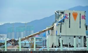 廣珠西線(xiàn)高速南屏出口旁邊一水泥攪拌站遭臺(tái)風(fēng)吹襲。廣州日?qǐng)?bào)全媒體記者龍成通 攝