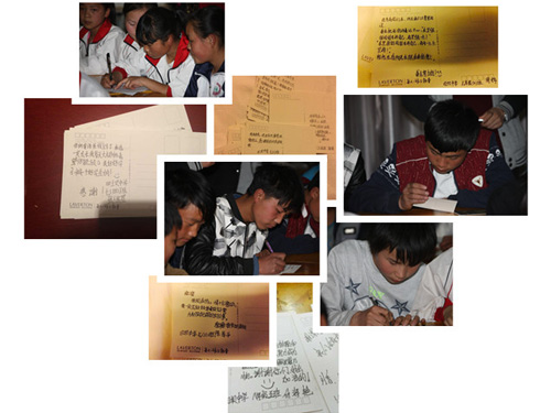 工作人員現(xiàn)場把寫有這些寄語的明信片分發(fā)給了同學(xué)們。同學(xué)們高興地捧著這些明信片,仔細(xì)閱讀,并在很快就在空白明信片上寫下了自己的感受。他們的文筆俊秀、情感真摯,字字句句都讓人十分感動。