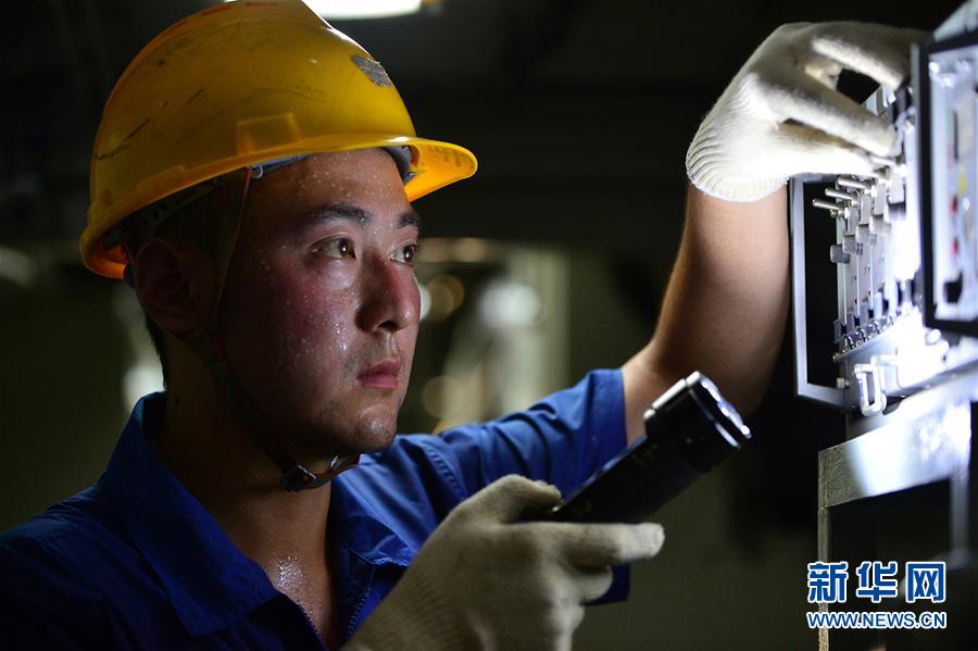 7月24日,西安鐵路局新豐鎮(zhèn)機(jī)務(wù)段機(jī)車電工在檢查入庫(kù)機(jī)車電器。