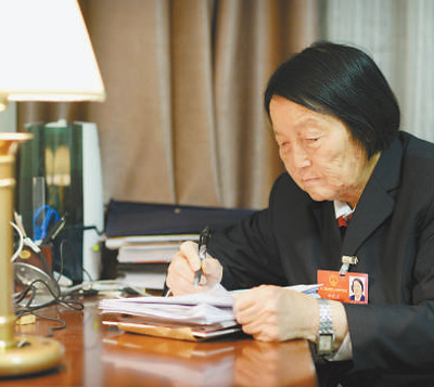 申紀蘭在翻看材料。