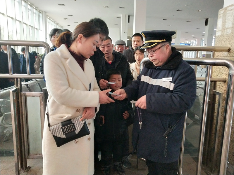 在宿州站一樓候車室,旅客們會經(jīng)常看到一個身材略胖,個頭不高,帶著一副老花鏡,總是面帶微笑服務的客運員,他就是鄭桂芝,主要負責一樓候車室旅客進站上車檢票和候車室巡視等。今年春運是老鄭的最后一個春運,再過幾個月他就要退休了,老鄭說:“這是我從事鐵路工作的最后一個春運,也將是我生命中最難忘的一次春運,因此,我格外珍惜與大伙在一起的日子,等我退休后,我還要來做志愿者,為車站為旅客奉獻一點微薄之力”。質樸的話語中流露出他對同事和崗位的依依不舍。