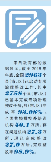 教育部今年1月匯總的各地?cái)?shù)據(jù)顯示,北京、天津、山西、遼寧、吉林、黑龍江、上海等20多個(gè)省區(qū)市存在問題的機(jī)構(gòu)已基本完成整改。