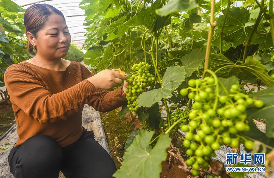 4月24日,河北省棗強縣唐林鎮(zhèn)李進伯村的農民給葡萄疏果。