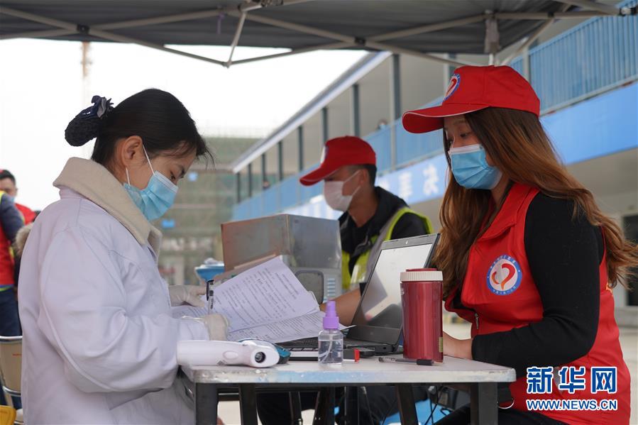 3月10日,在中建三局一公司成都京東方醫(yī)院項目,青年志愿者獻血前進行體檢。 當(dāng)日,愛心獻血車走進中建三局一公司成都京東方醫(yī)院項目,60余名青年志愿者踴躍獻血。據(jù)了解,為緩解疫情防控期間血液庫存短缺問題,保障醫(yī)療機構(gòu)臨床用血需求,四川省成都市血液中心發(fā)起了無償獻血活動,市民或團體可通過預(yù)約的方式參與其中。 新華社發(fā) (胥冰潔攝)