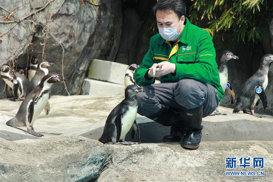 3月7日,武漢動物園飼養(yǎng)員喂企鵝吃小魚。 新冠肺炎疫情發(fā)生后,武漢動物園于1月22日起暫停開放,園區(qū)數(shù)十名員工一直堅守崗位,悉心為動物們喂食、對公共區(qū)域消毒殺菌,保證動物們在疫情期間生存環(huán)境安全舒適。武漢動物園占地達64萬平方米,園區(qū)里有大熊貓、小熊貓、火烈鳥、長頸鹿、企鵝、河馬、袋鼠等近百種約千頭(只)動物。 新華社發(fā)