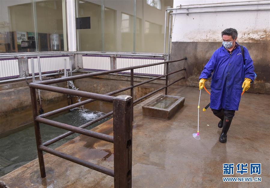3月13日,武漢動物園飼養(yǎng)員為河馬館消毒。 新冠肺炎疫情發(fā)生后,武漢動物園于1月22日起暫停開放,園區(qū)數(shù)十名員工一直堅守崗位,悉心為動物們喂食、對公共區(qū)域消毒殺菌,保證動物們在疫情期間生存環(huán)境安全舒適。武漢動物園占地達64萬平方米,園區(qū)里有大熊貓、小熊貓、火烈鳥、長頸鹿、企鵝、河馬、袋鼠等近百種約千頭(只)動物。 新華社記者 李賀 攝