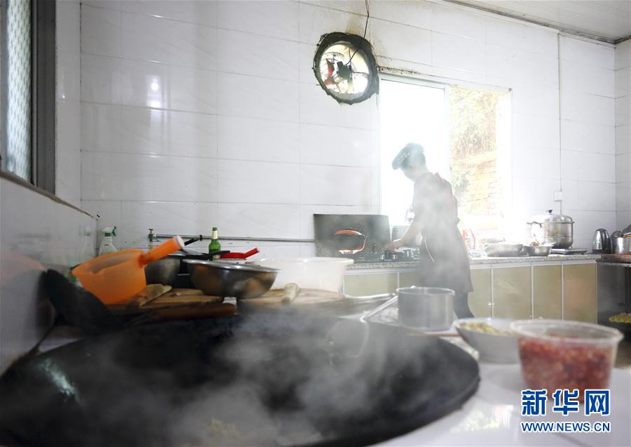 5月7日,劉麗紅在大柏地鄉(xiāng)政府的廚房?jī)?nèi)燒菜。