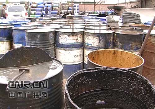 在這家私營(yíng)的小化工廠內(nèi),工業(yè)廢油隨處可見(jiàn)