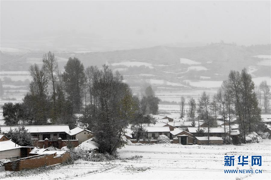 10月28日,渭源縣五竹鎮(zhèn)鹿鳴村被白雪覆蓋。當(dāng)日,位于甘肅中部的定西市渭源縣受冷空氣影響迎來(lái)降雪天氣,山村、道路被白雪覆蓋,變得銀裝素裹。 新華社記者 范培珅 攝
