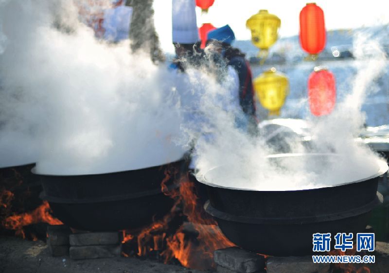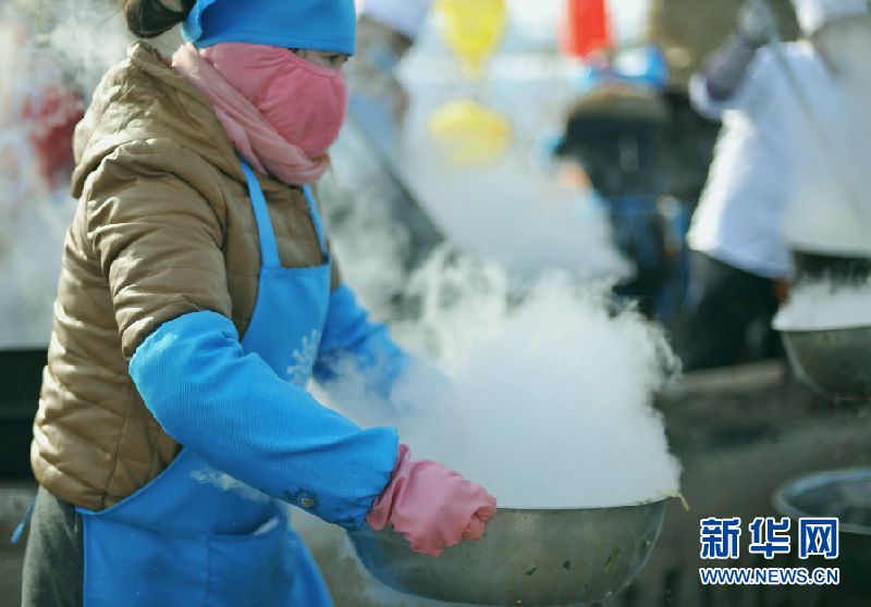 正在烹制的山丹“牛娃子飯” 新華網(wǎng)蘭州12月24日電(陳楚培)12月22日,是二十四節(jié)氣中的冬至。在甘肅省張掖市山丹縣近郊,由10000斤面、18頭豬以及大量蔬菜在68口鍋中烹制而出的“牛娃子飯”讓當?shù)厝罕姾湍矫鴣淼挠慰痛箫柨诟,大家一同祈福來年風調(diào)雨順。“相約魅力祁店 傳承民俗經(jīng)典”第四屆祁店冬至民俗文化節(jié)也就此拉開了序幕。 -