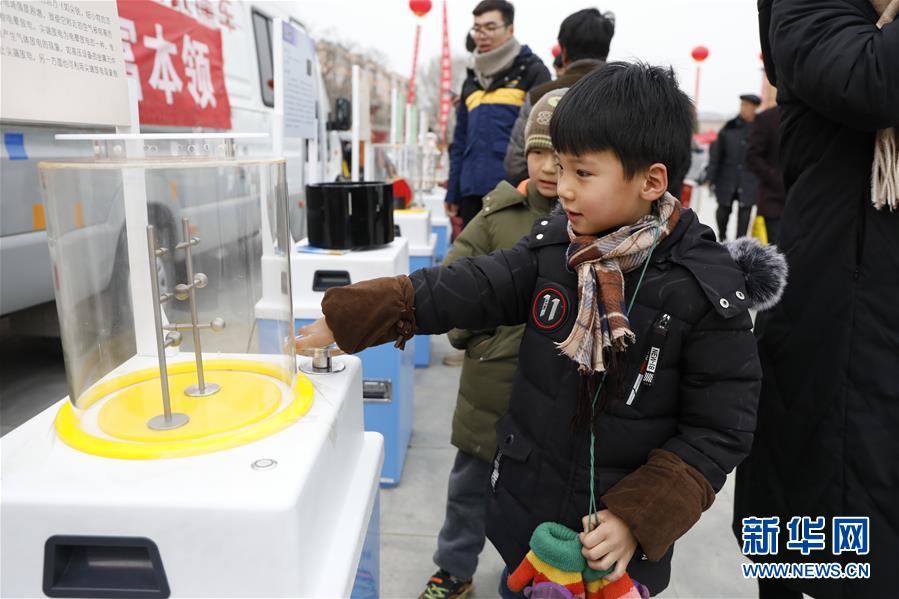 1月15日,在靜寧縣成紀(jì)廣場,小朋友在體驗科普裝置。 當(dāng)日,甘肅省2019年文化科技衛(wèi)生“三下鄉(xiāng)”集中示范活動在甘肅省靜寧縣舉行,文化、醫(yī)療和科技工作者為當(dāng)?shù)厝罕娝腿ベN心服務(wù)和新春祝福。 新華社發(fā)(張智敏 攝)