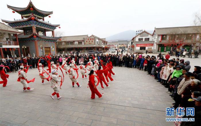 1月20日,在甘肅平?jīng)鍪嗅轻脊沛?zhèn),游客觀看新春民俗活動(dòng)中的安塞腰鼓表演。新華社發(fā)(吳希會(huì) 攝)