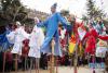 2月19日,在甘肅省隴南市武都區(qū)馬街鎮(zhèn)官堆村,社火隊(duì)小演員參加巡游表演。新華社記者才揚(yáng) 攝 -
