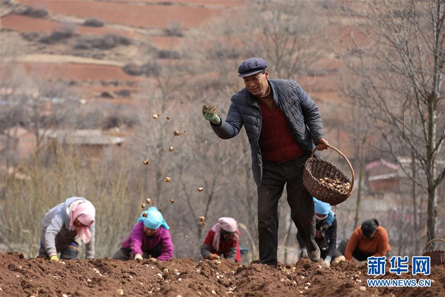 3月11日,渭源縣元古堆村村民在播撒百合種子。新華社發(fā)(馬希平 攝)