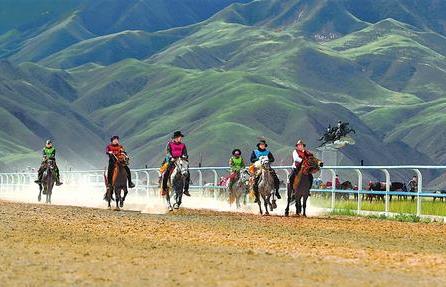 6月8日,肅南裕固族自治縣“雪域”杯第四屆賽馬會(huì)在祁連山北麓的索朗格國(guó)際賽馬場(chǎng)舉行。 成林 攝
